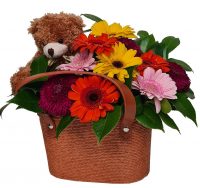 A seasonal selection of autumn toned flowers, wrapped in eco friendly brown paper teamed up with an indulgent selection of chocolate goodies including: Molly Woppy peanut butter dark choc cookie 68g x 2